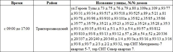 Плановое отключение света ждет жителей Тракторозаводского района.