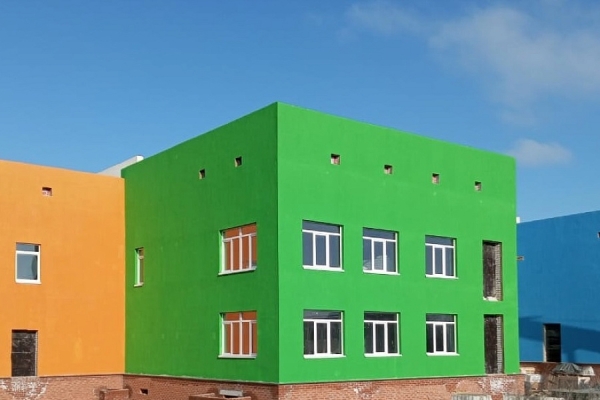 Объект находится в микрорайоне перспективной застройки. Подрядчик выполнил работы по возведению основных конструкций здания. На текущий момент завершается устройство кровли. Также специалисты занимаются монтажом оконных блоков, инженерных систем, внутренней и наружной отделкой.