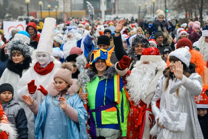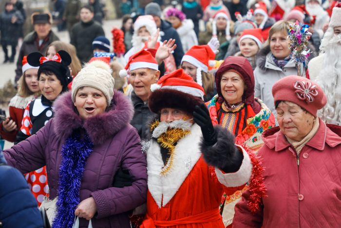 В Красноармейском районе состоялась необычная акция. Деды Морозы, Снегурочки и сказочные герои прошли по проспекту Героев Сталинграда.