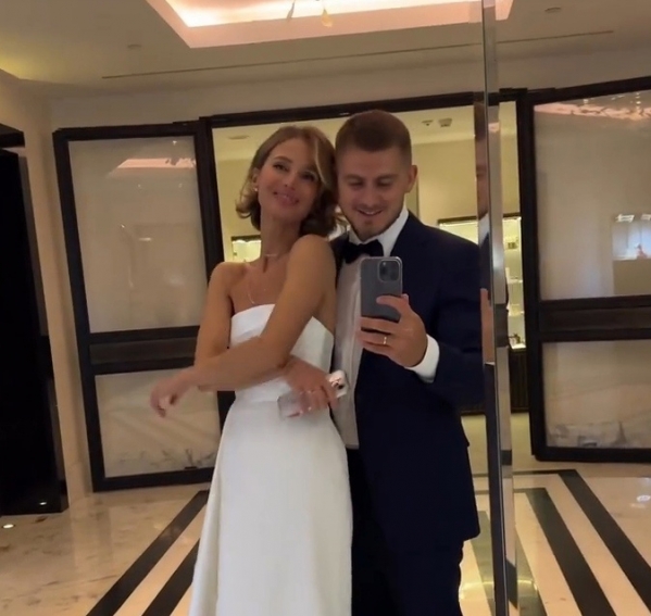 На опубликованных фотографиях и видео видно, что жених выбрал для церемонии классический костюм с бабочкой, а невеста была облачена в скромное белое платье в пол с открытыми плечами.