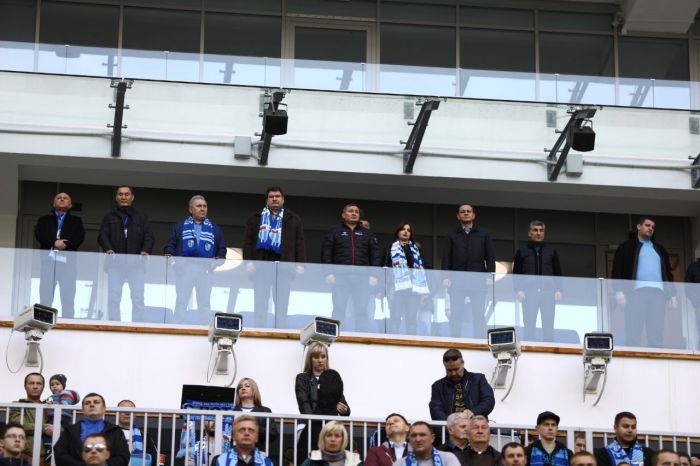 На игре присутствует глава региона Андрей Бочаров. Матч начался с минуты молчания – собравшиеся на стадионе игроки и болельщики почтили память легендарного диктора Ольги Парамоновой и жертв трагедии Керчи.
