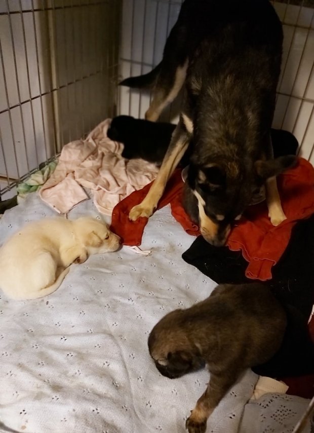 Как рассказала руководитель приюта «Самые святые на Земле» Наталья Русина, она лично забрала Дину с щенками, у которых уже прорезались зубки и открылись глаза.