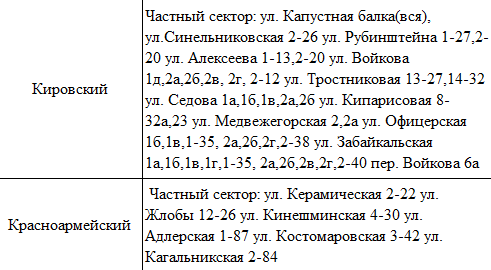 В Кировском и Красноармейском районах электроснабжение прекратится по следующим адресам: