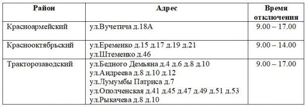 Время отключения и точные адреса, где в этот день не будет света, представлены в таблице ниже: