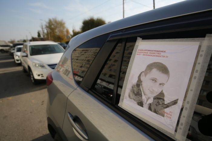 Приехавшие на похороны волгоградцы наклеили на заднее стекло автомобилей портрет Романа, сообщает фотокорреспондент «Волгоградской правды.ру».