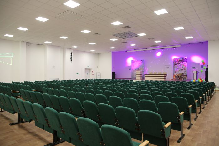 Современная школа располагает всеми условиями для занятий и полезного досуга: деловой центр, актовый зал, библиотеки, web-мастерские, лингафонные кабинеты. Для занятий спортом в учреждении предусмотрены два спортзала, тренажерный зал, стадион с площадками для мини-футбола, волейбола и баскетбола.