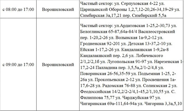 Отключение затронет больше всего адресов в Ворошиловском районе, сообщили в ресурсоснабжающей организации.
