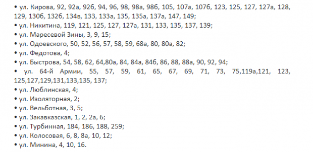 Также со вторника по пятницу на юге областного центра горячую воду отключат по адресам: