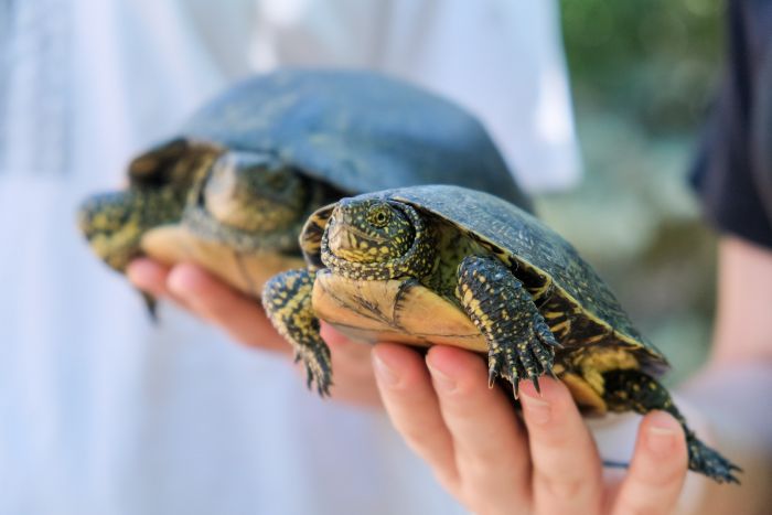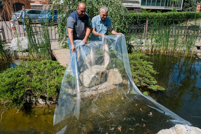 Во время подготовки пруда за черепахами и карпами кои следили школьницы. Они же и выпустили их в воду. Теперь в водоеме плавают оранжевые и серебряные рыбки. В этом году к ним присоединились и другие особи семейства карповых.