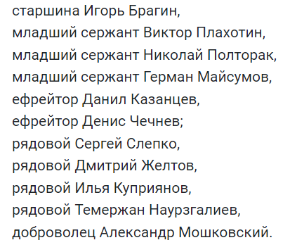 За мужество и отвагу при исполнении воинского и служебного долга посмертно государственных наград удостоены: