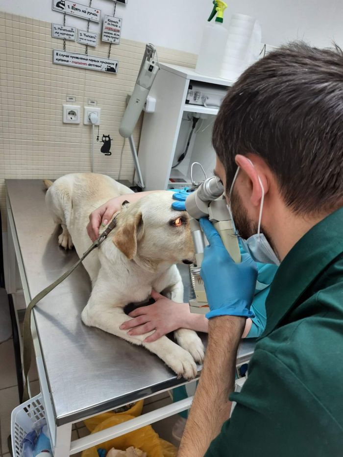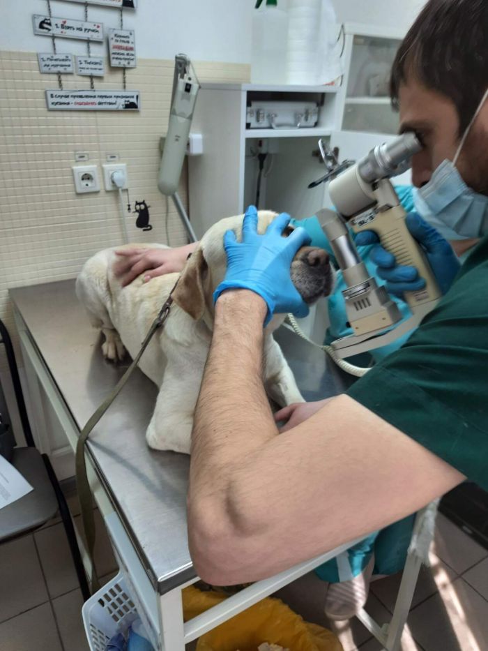 Замечательный лабрадор Дуся сейчас совсем ничего не видит.
