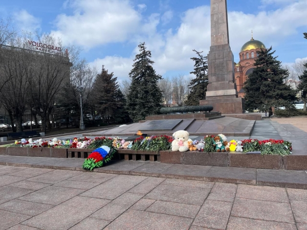 Волгоградцы продолжают идти к Вечному огню на Аллее Героев и приносить мягкие игрушки и цветы в память о жертвах теракта. Люди посещали стихийно возникший мемориал в течение всего вчерашнего дня и продолжают приходить сегодня. У многих волгоградцев слезы на глазах.