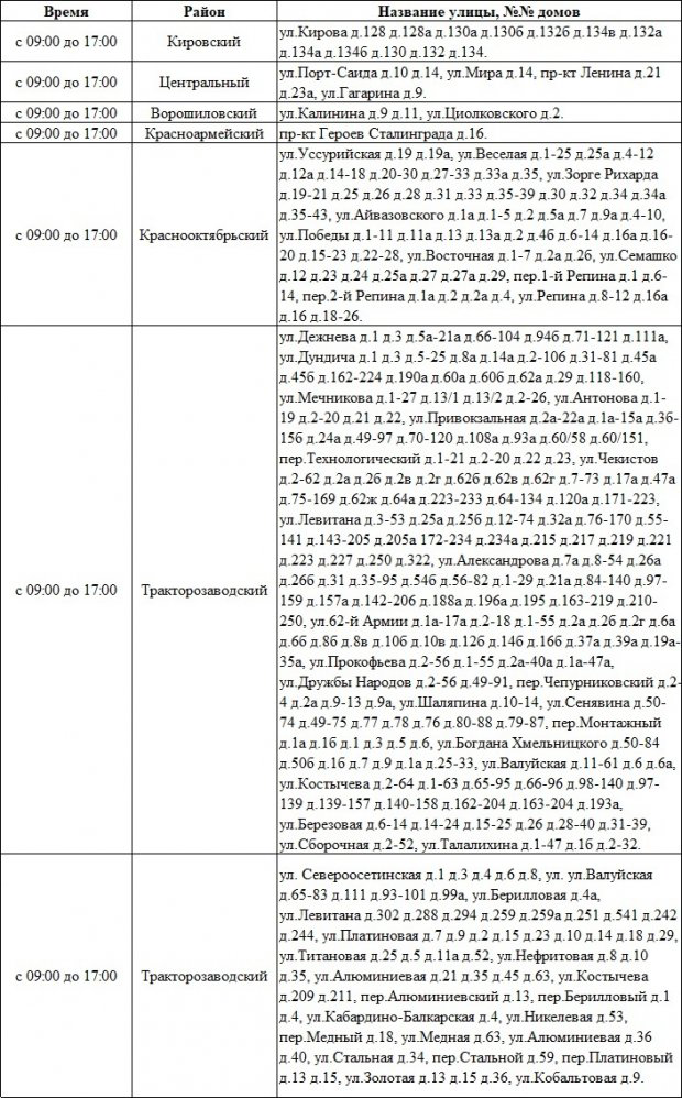 В среду временно отключат электричество в Кировском, Центральном, Ворошиловском, Красноармейском, Тракторозаводском и Краснооктябрьском районах. Неудобства связаны с проведением плановых работ на электросетях.
